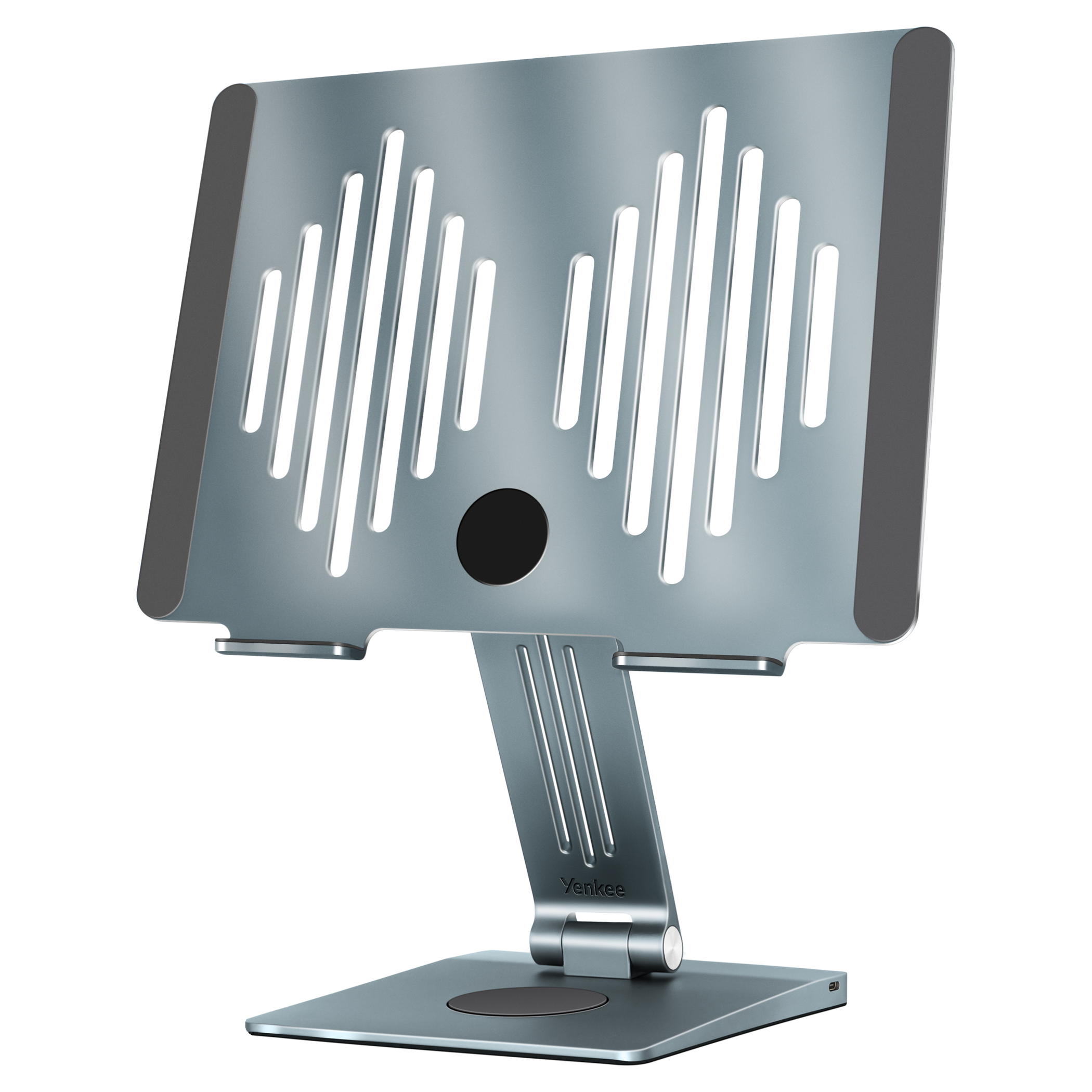A YENKEE YSN 03 TASK univerzális állvány max. 15,6" képátlójú laptopokhoz és táblagépekhez is használható. A prémium alumínium és szilikon anyagok biztosítják a tartósságot, míg a 360 fokos elforgórendszer stabilan tartja az eszközt. Modern, semleges dizájnja tökéletes otthonra, irodába vagy tárgyalóterembe.