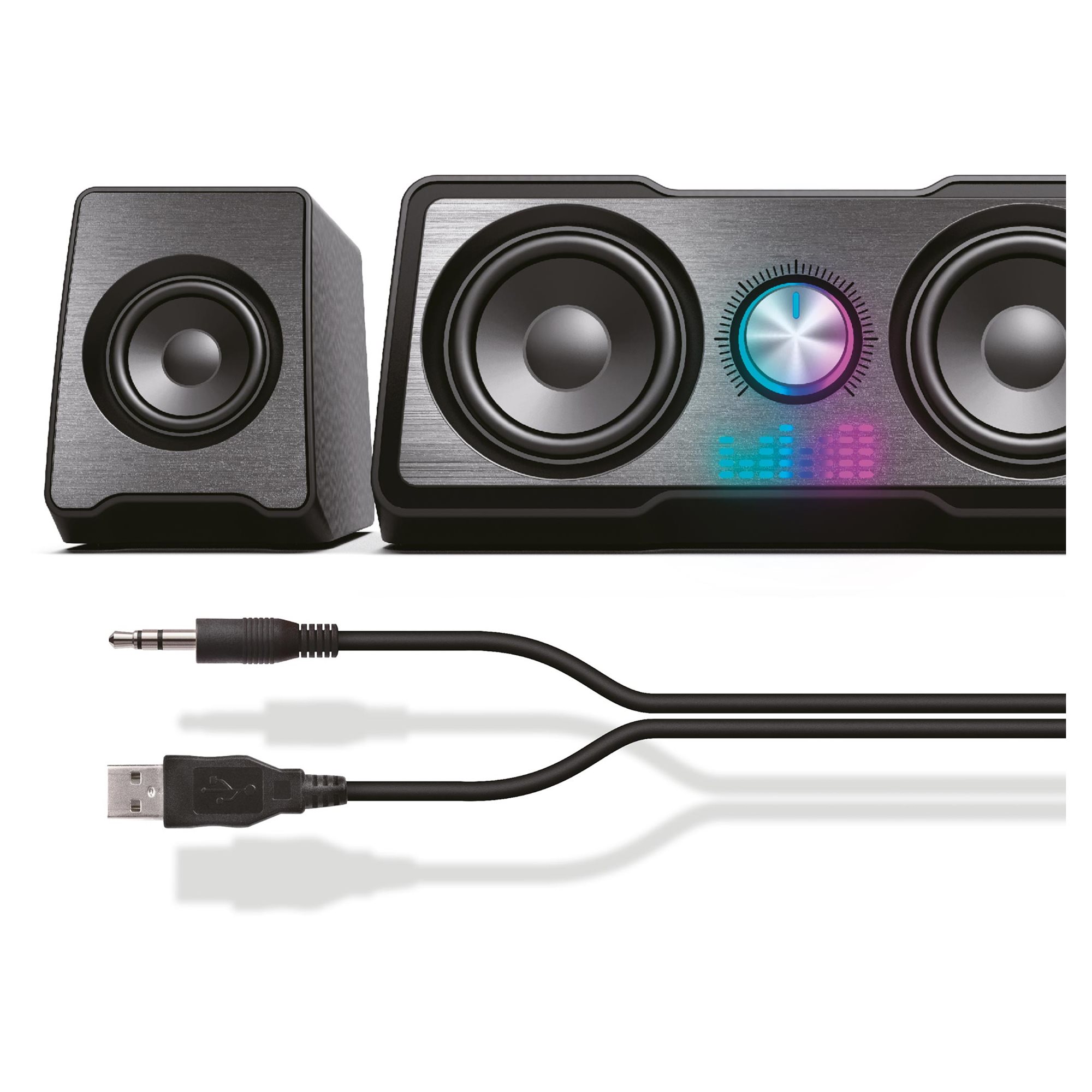 A 3,5 mm-es audiocsatlakozónak köszönhetően pillanatok alatt csatlakoztatható bármilyen számítógéphez vagy laptophoz. A hangerőszabályzó könnyen elérhető a mélynyomó előlapján, az áramellátásról pedig egy USB-kábel gondoskodik. Nem bonyolult a beállítása csak csatlakoztatni kell, és már indulhat is a tökéletes zenehallgatás!