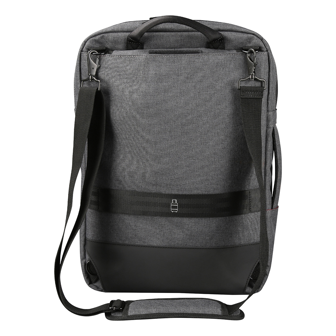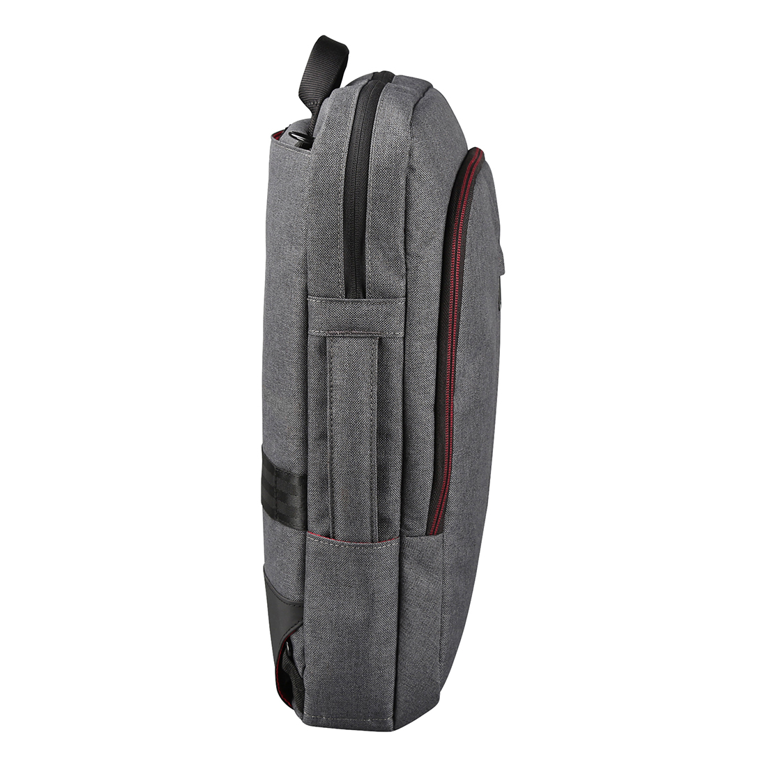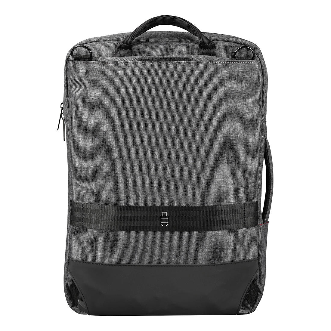 A táskát a könnyebb közlekedés érdekében hozzá lehet erősíteni a kerekes bőrönd fogantyújához. A két elülső zseb alkalmas értékek, dokumentumok és gyakran használt apró tárgyak tárolására.