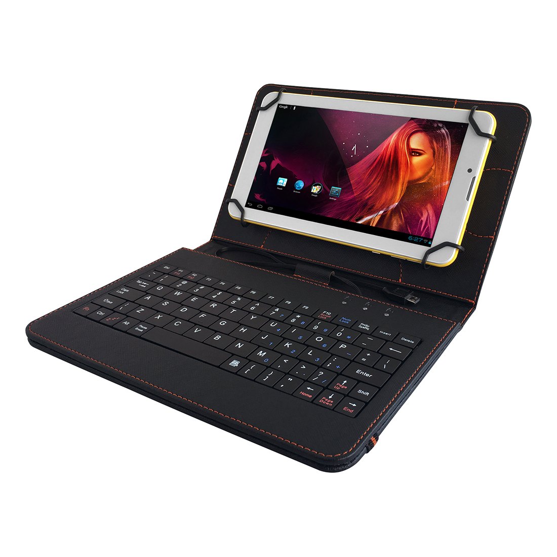 3 az 1-ben: tok, állvány és billentyűzet. Univerzális védőtők QWERTY-billentyűzettel, valamint 7"-os és 8"-os táblagépekhez való állvánnyal. A billentyűzet kizárólag tápellátást biztosító (úgynevezett OTG típusú) USB-porttal rendelkező eszközökkel kompatibilis.Az innovatív sarokrögzítő rendszer gondoskodik a táblagép biztonságos hordozhatóságáról, és megakadályozza, hogy az kiessen a tokból.