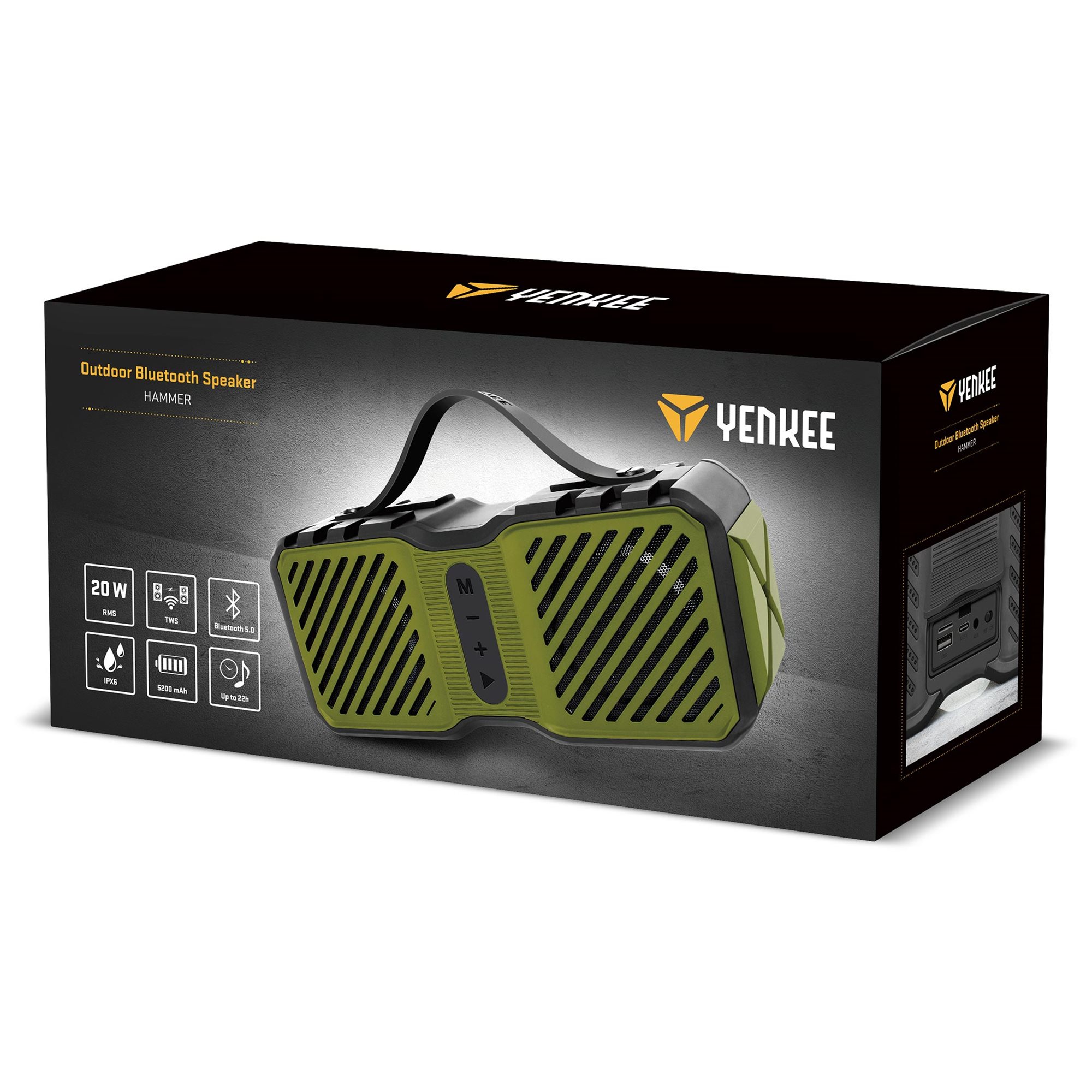 Ha a kertben, a parkban vagy a munkahelyen akarsz szórakozni a barátaiddal vagy a kollégáiddal, vigyél magaddal. Mert én vagyok a Yenkee YSP 3000GN Hammer, a vezeték nélküli Bluetooth hangszóró, és az unalom mostantól ismeretlen fogalom lesz számodra. Csatlakoztass a mobilodhoz, tabletedhez vagy mp3-lejátszódhoz, hívd meg a barátaidat, és kezdődhet a házibuli.