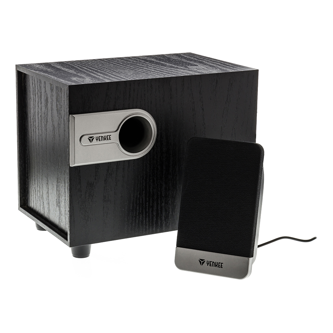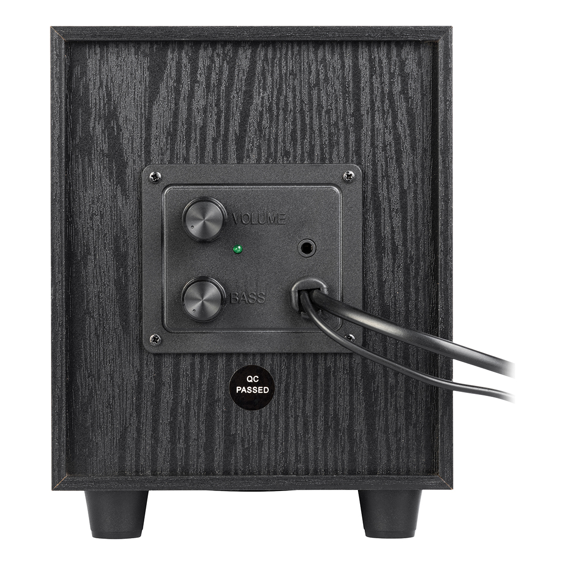 A subwoofer minpőségi faforgácsból készült, hogy megakadályozza, hogy a hang rezonáljon. A bassreflex port jól kiegyensúlyozott basszust biztosít, amit a subwoofer oldalán lévő gombbal is beállíthat.