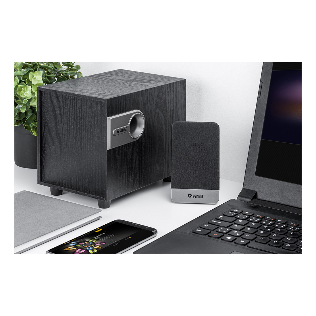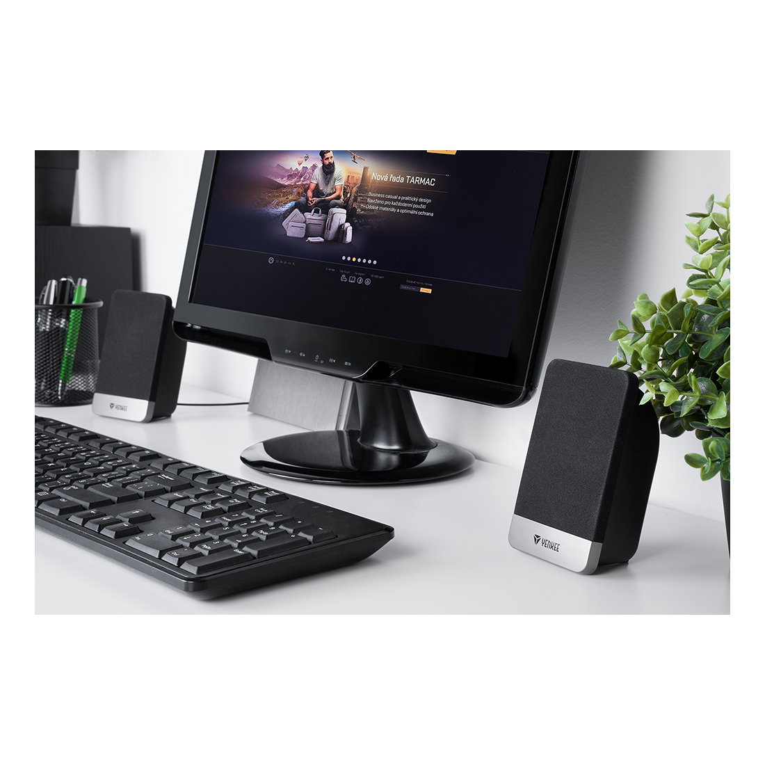 A kompakt méretek lehetővé teszik, hogy a műholdas hangszórókat képernyője vagy notebookja mellé a munkaasztalra tegye, és mégis elég helye marad.