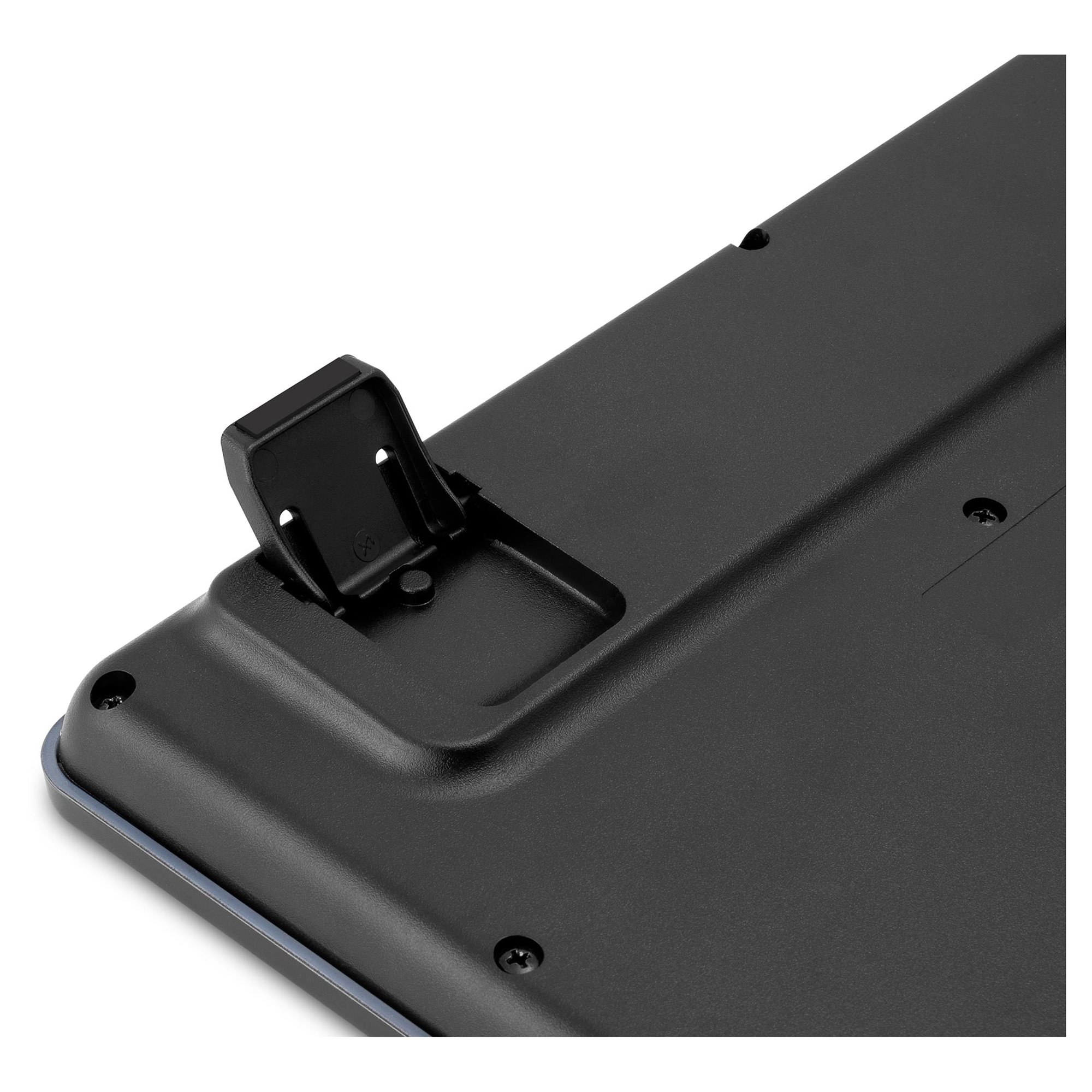 Munkája során biztosan értékelni fogja az állítható dönthető lábakat, amelyek biztosítják a billentyűzet tökéletes pozicionálását és stabilitását az asztalon történő gépelés során. A billentyűzet használat közben problémamentesen tölthető, így emiatt nem kell többé megszakítania a munkáját. Az akkumulátor kímélése érdekében, ha nem használja, egyszerűen kikapcsolhatja a billentyűzetet, ezzel növelheti az akkumulátor élettartamát és a töltések közötti időtartamot. A vezeték nélküli billentyűzet az alján található elvezetőcsatornáknak köszönhetően kiömlésbiztos.