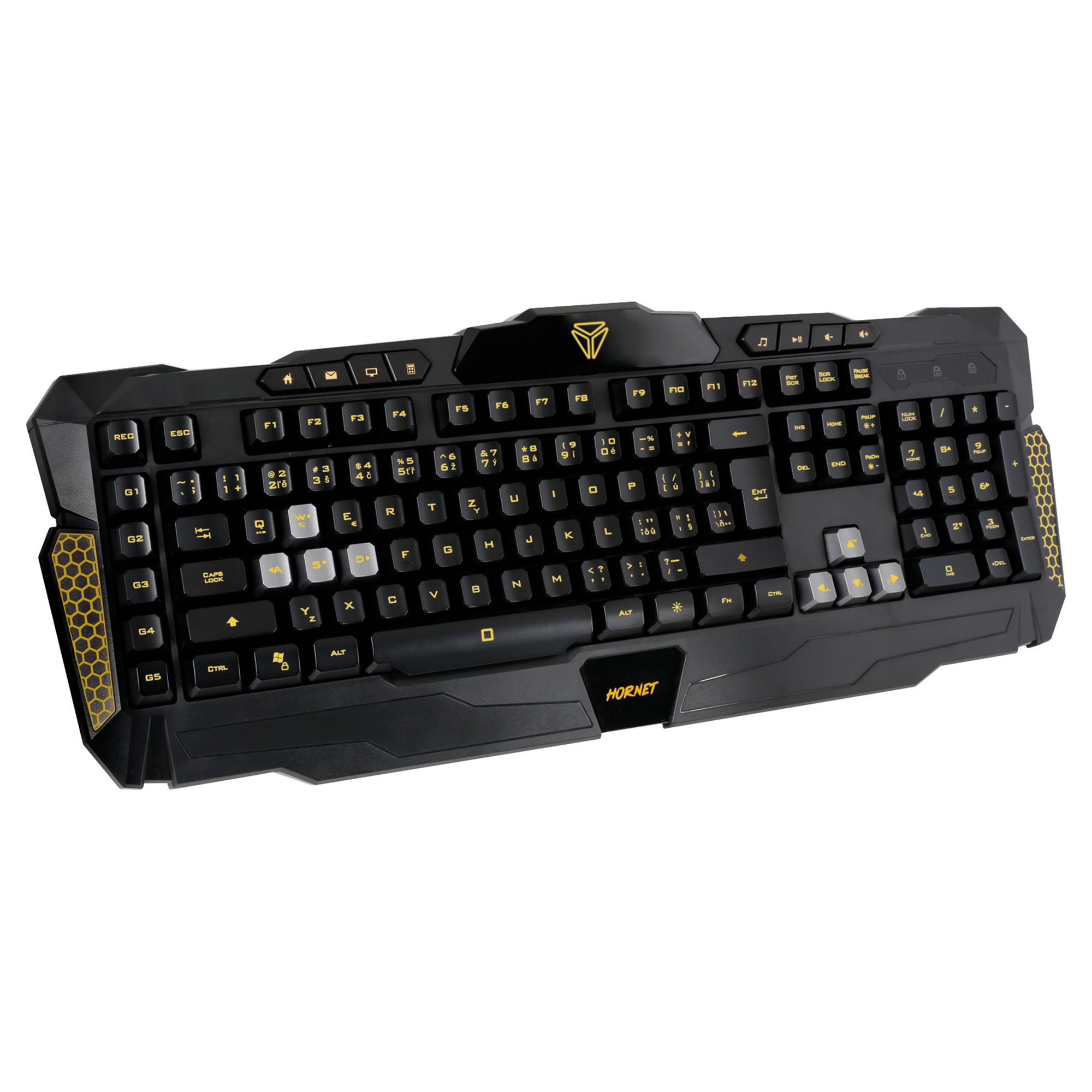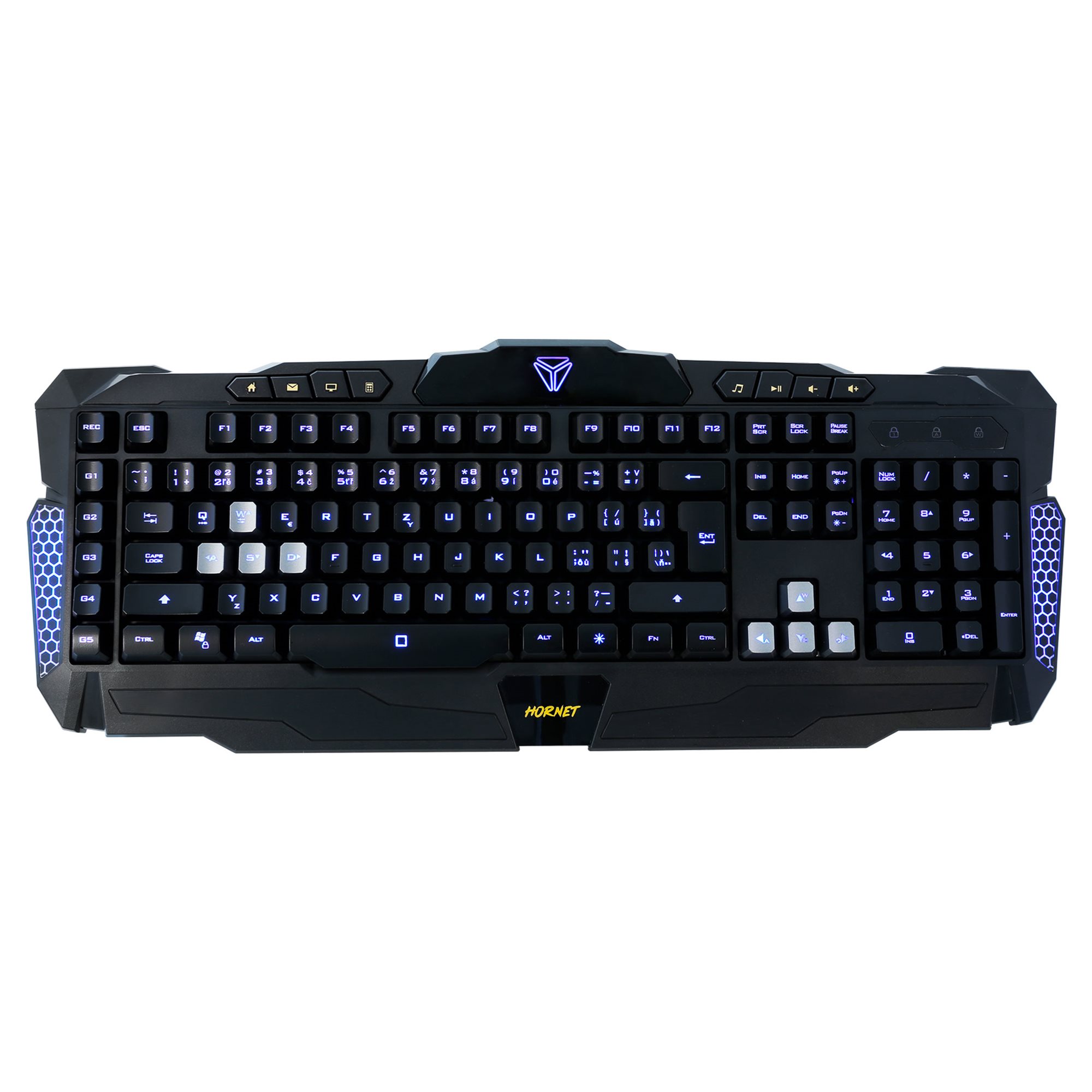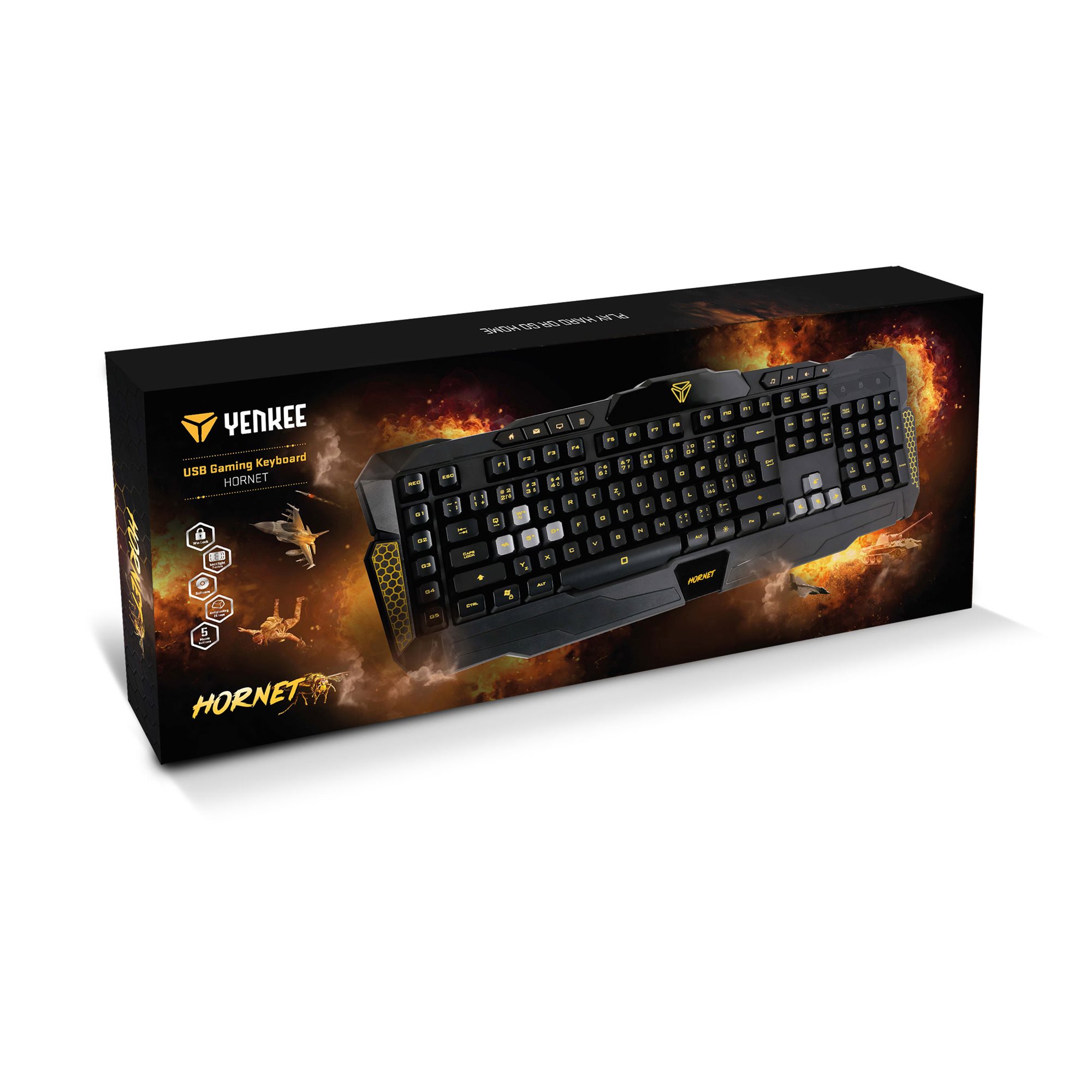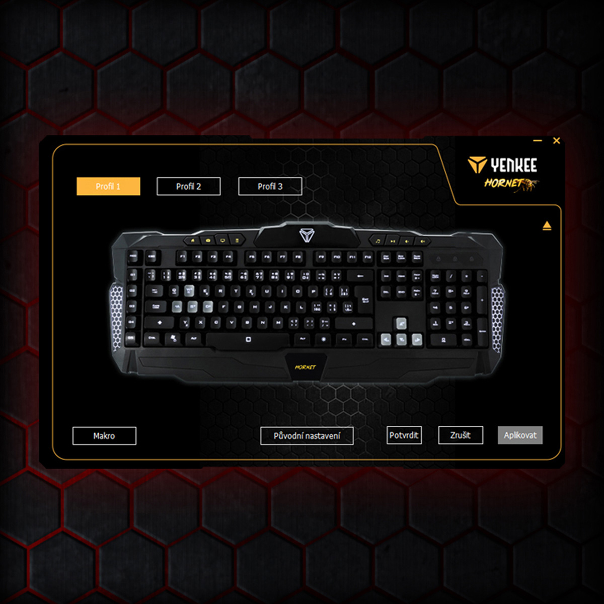 Az YKB 3300 HORNET gamer billentyűzet 7-színű háttérvilágítással és makrók beállítására szolgáló szoftverrel rendelkezik. Hét háttérvilágítási szín áll rendelkezésedre, így kiválaszthatod kedvenc színed, módosíthatod a fényerőt, és összehangolhatod a többi perifériáddal.