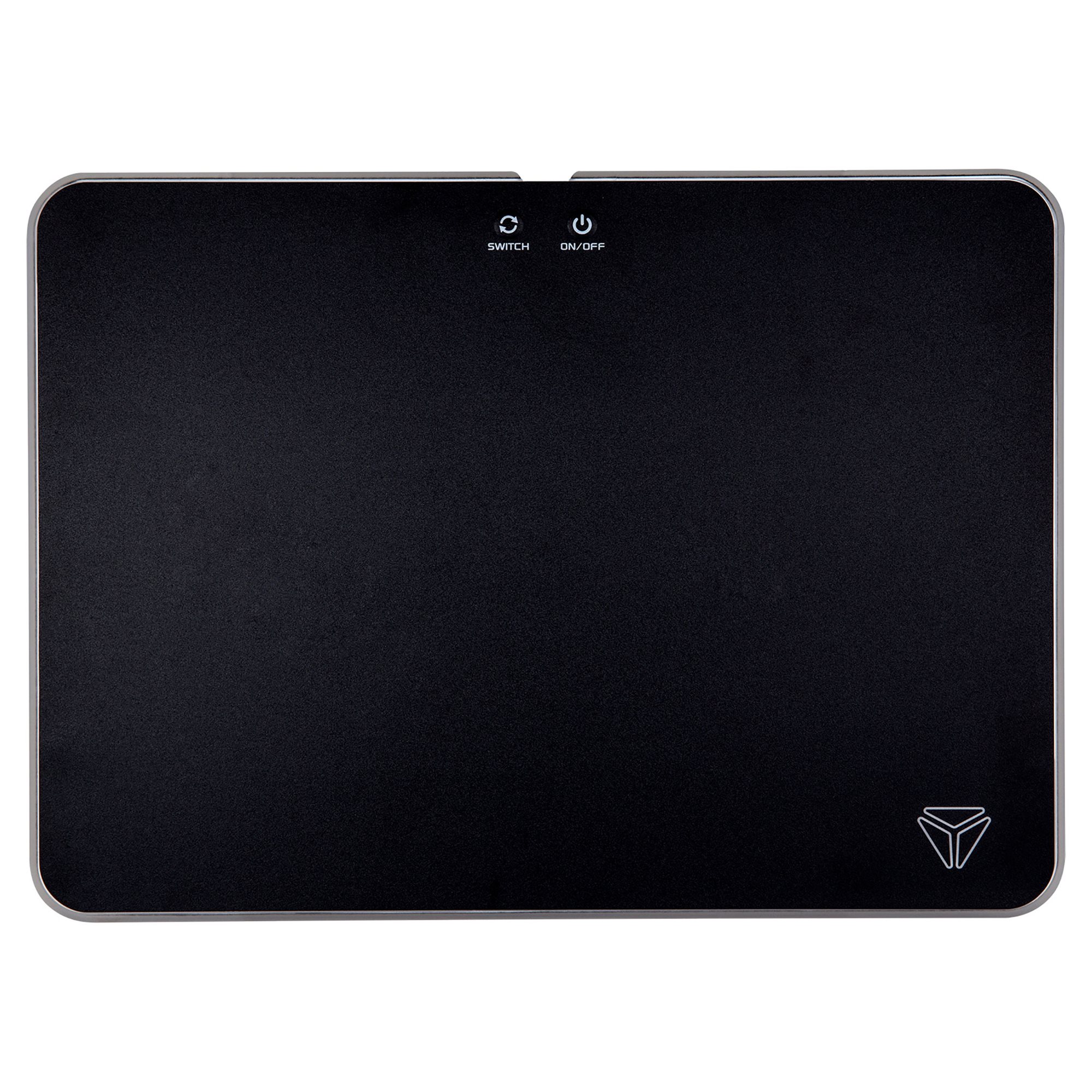 A háttérvilágítás-vezérlő jól elérhető, és ugyanolyan szinten van, mint a padfelület, így nem csökkenti a játékterületet, és nem korlátozza az egér mozgását.