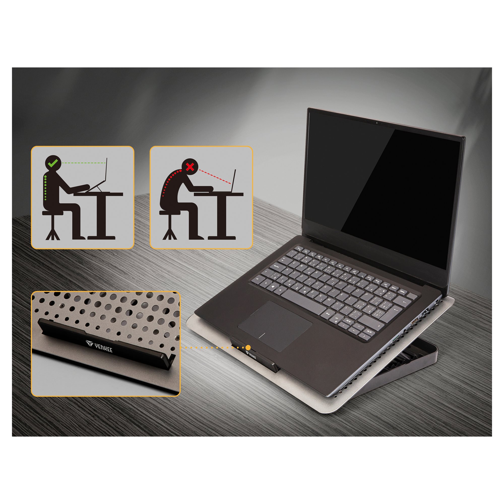A Yenkee YSN 150 csúszásmentes felületet kínál, amely biztosítja, hogy a laptop stabilan maradjon, miközben dolgozol rajta. A hűtőalátét magassága akár 14,5 cm-ig is állítható, így kényelmesebbé teszi a munkát, legyen szó irodáról, nyaralásról vagy a medence melletti pihenésről. Nyugodtan dolgozhatsz, mert a laptop megfelelő hűtést kap, amely megvédi a megbízható teljesítményt.