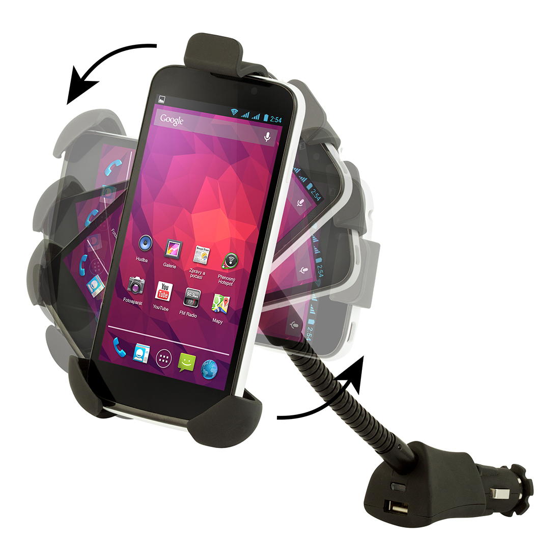 A mobiltelefon-tartó felszerelésének legjobb módja a szivargyújtóhoz történő csatlakoztatás.
