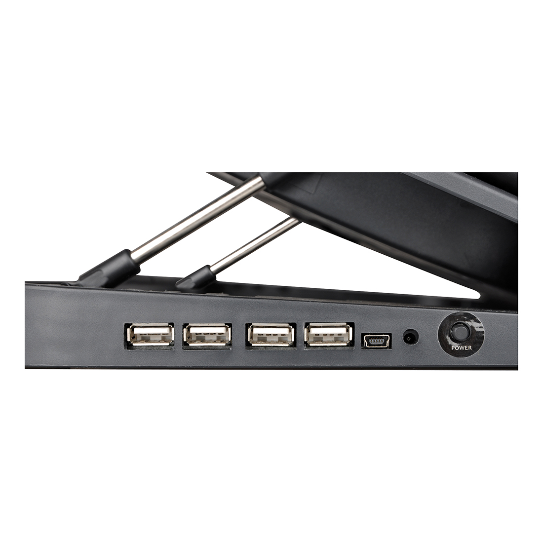Az optimális hőelvezetésről nagy teljesítményű ventilátor gondoskodik, amely kikapcsolható, és a notebook méretének és típusának megfelelő ideális helyzetbe állítható (a ventilátor az alátét közepéhez képest mind jobbra, mind balra mintegy 7 cm-rel vízszintesen eltolható).