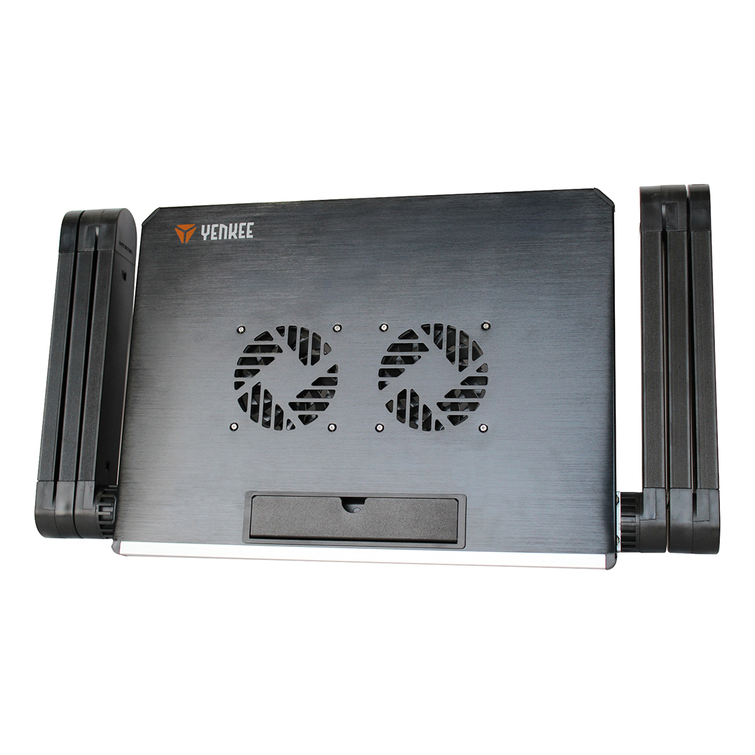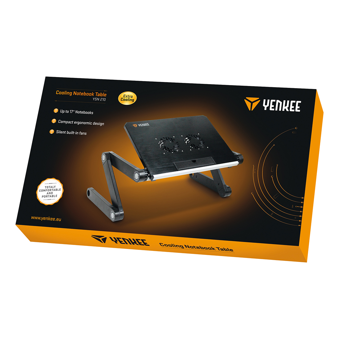 A Yenkee YSN 210 hűtőállvány akár 17" méretű notebookokhoz ideális, alumíniumtesttel és két 80 mm-es ventilátorral, amelyek biztosítják a megfelelő hőelvezetést és a készülék optimális hűtését. Az állvány hat elforgatható csuklóval (360°) rendelkezik, így könnyedén beállíthatod a notebookot a kívánt pozícióba munkához vagy szórakozáshoz, és biztosítja a stabilitást akkor is, ha enyhén egyenetlen felületen használod.