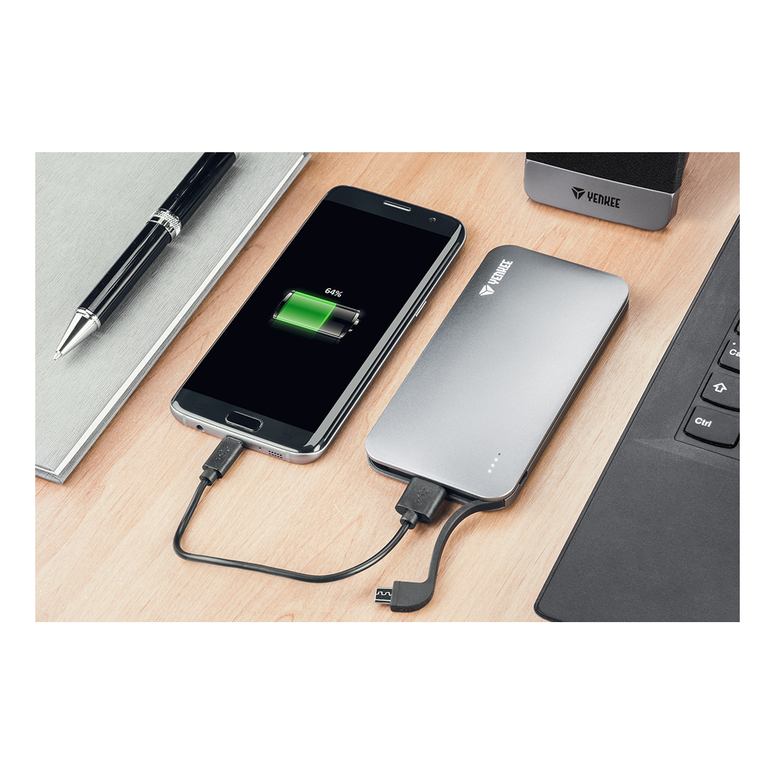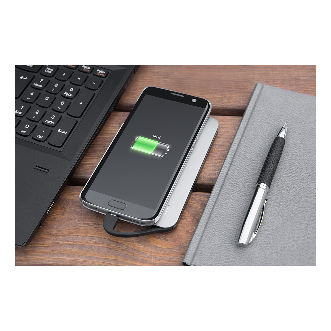 8000 mAh kapacitású hordozható Power Bank, amely két készüléket tud egyszerre tölteni. Alkalmas mobiltelefonok, táblagépek és egyéb 5 V DC USB-s energiaforrást igénylő készülékek töltésére.