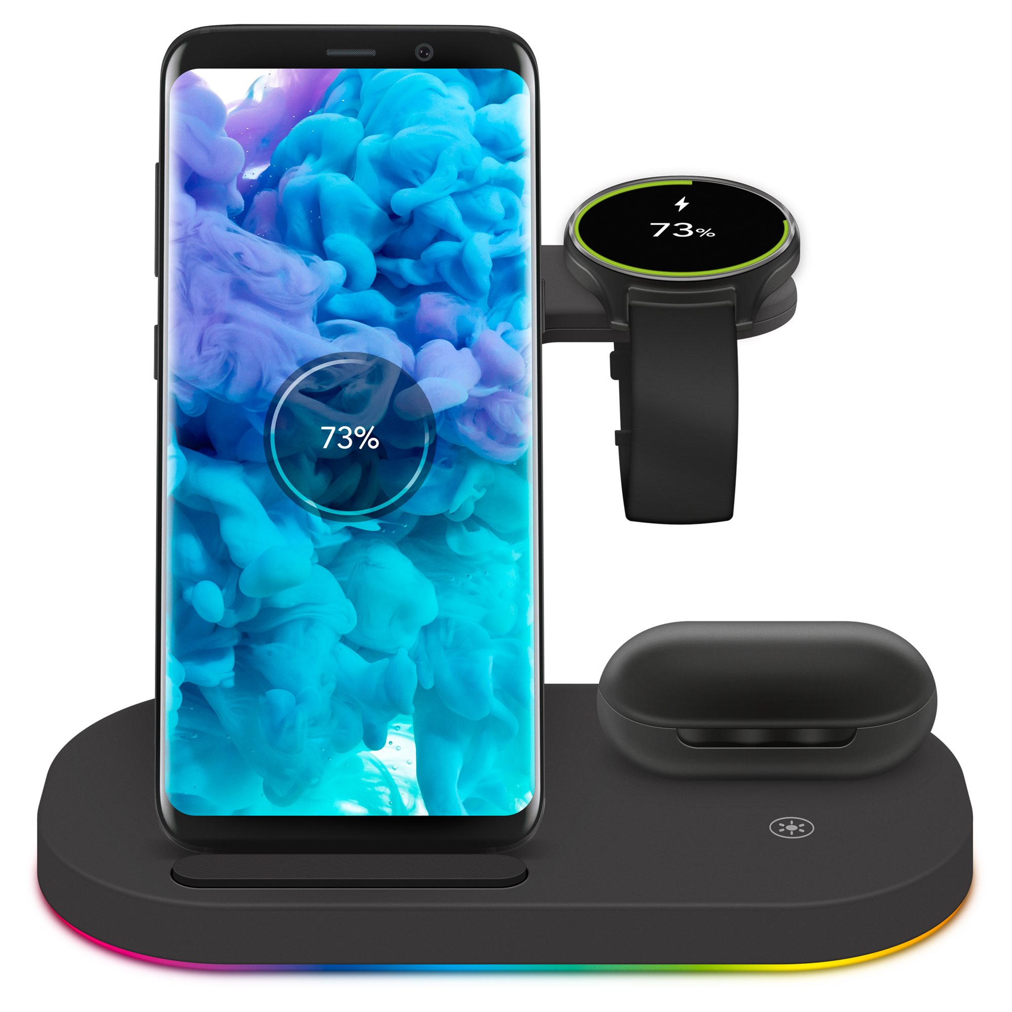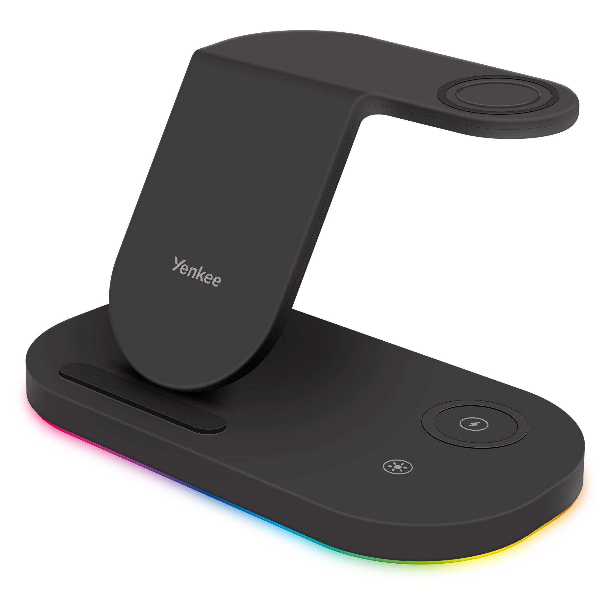 Én egy Yenkee töltőállomás vagyok, és első pillantásra lenyűgöz az állványom szerény, józan kialakítása. Kitehetsz a nappaliba vagy a dolgozószobába, vagy elvihetsz a munkahelyedre, és mindig jól fogok kinézni. Egyszerre tudom vezeték nélkül tölteni a telefont, a fejhallgatót vagy a Samsung okosórát. Automatikusan beindulok, amikor csatlakoztatod a készüléket, és a praktikus mágnesnek köszönhetően az órád nem fog leesni.