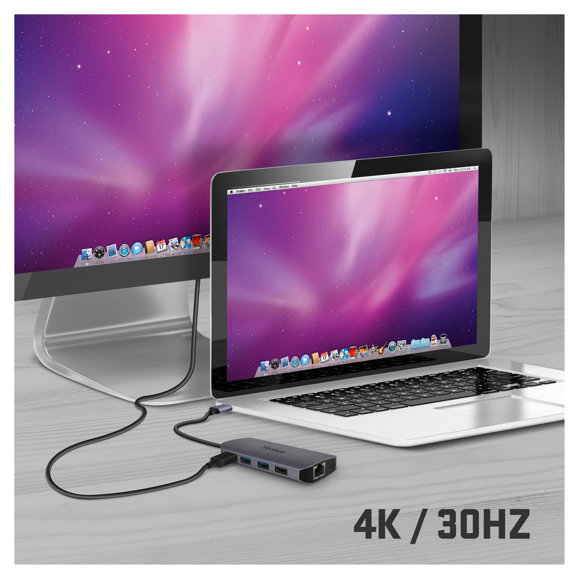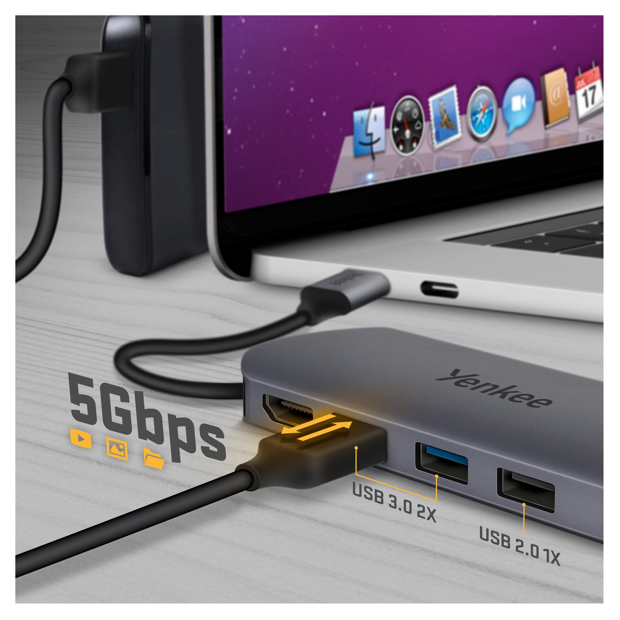 A három USB A csatlakozóval csatlakoztasd kedvenc billentyűzetedet vagy egeredet. Közülük kettő egyenesen 3.0 osztályú, ami akár 5 Gbps adatátviteli sebességet jelent számodra. Ezáltal a flash- vagy külső meghajtók csatlakoztatása gyerekjáték, ugyanakkor a velük való munka rendkívül gyors. Bármilyen rendszerrel elboldogul. Akár a macOS, iPadOS vagy Windows rajongója vagy.