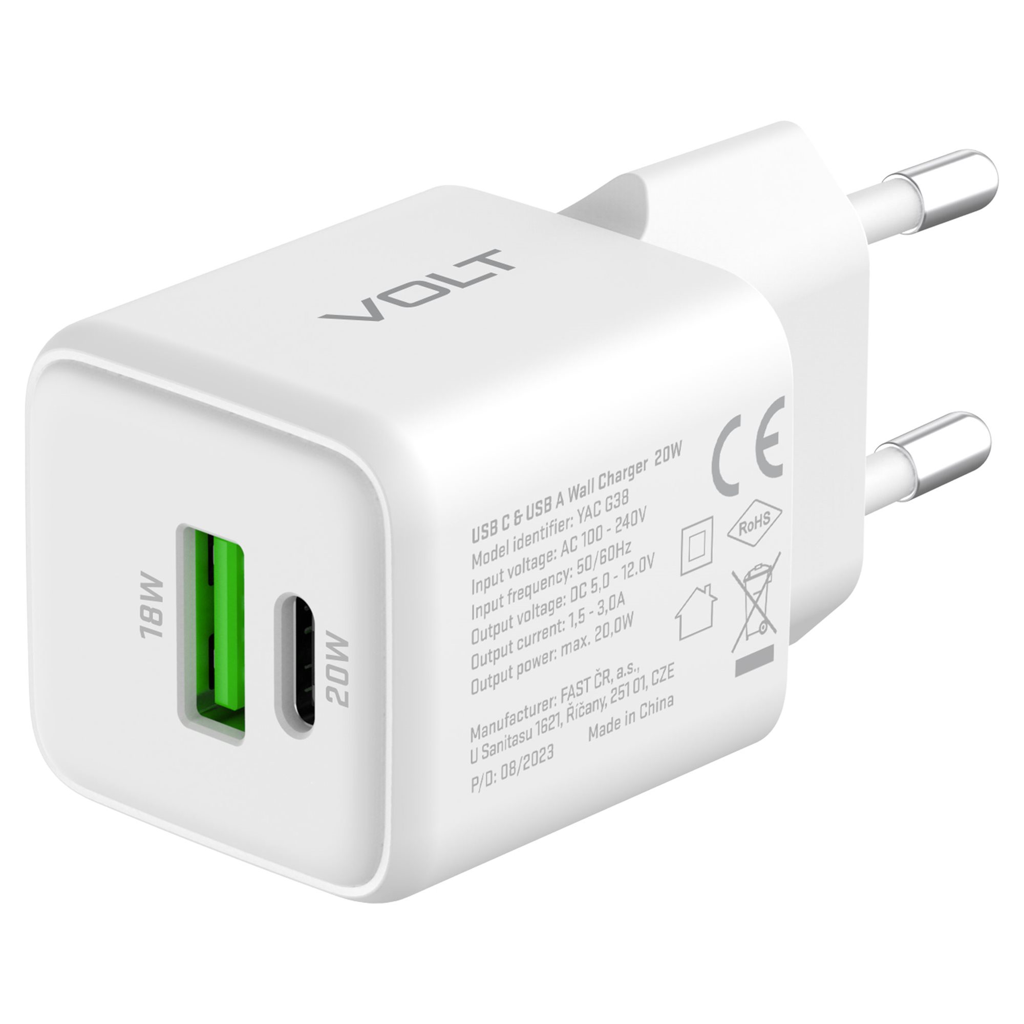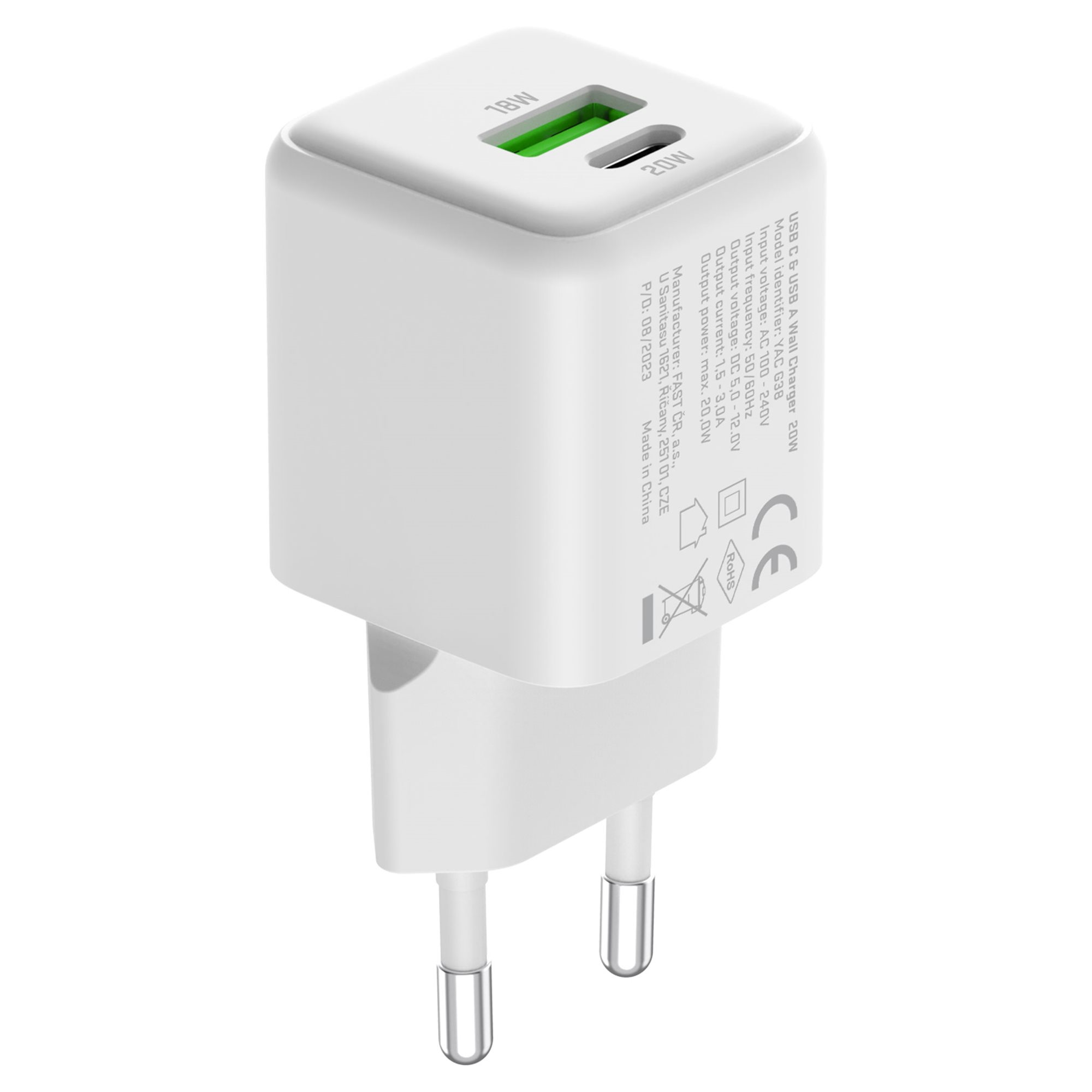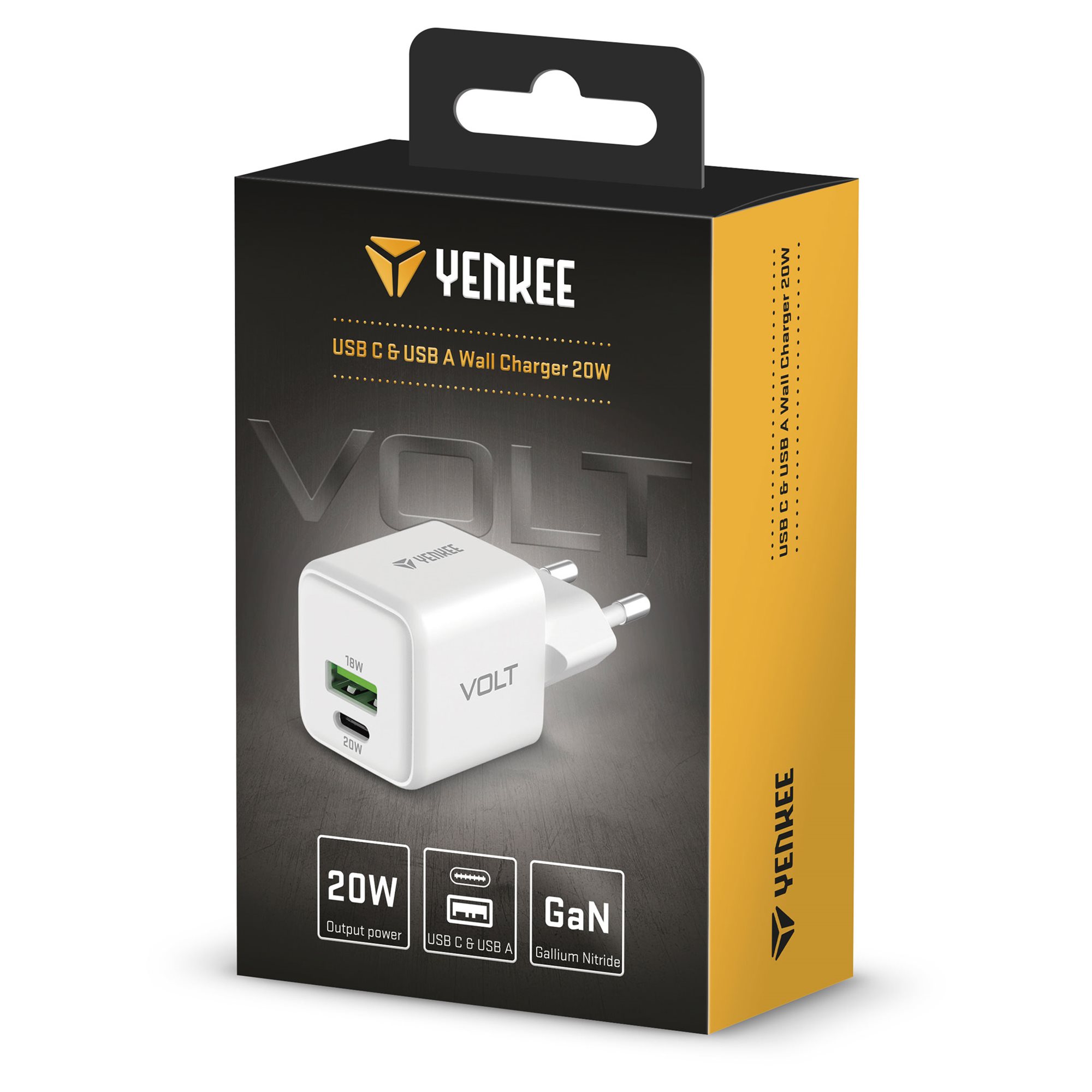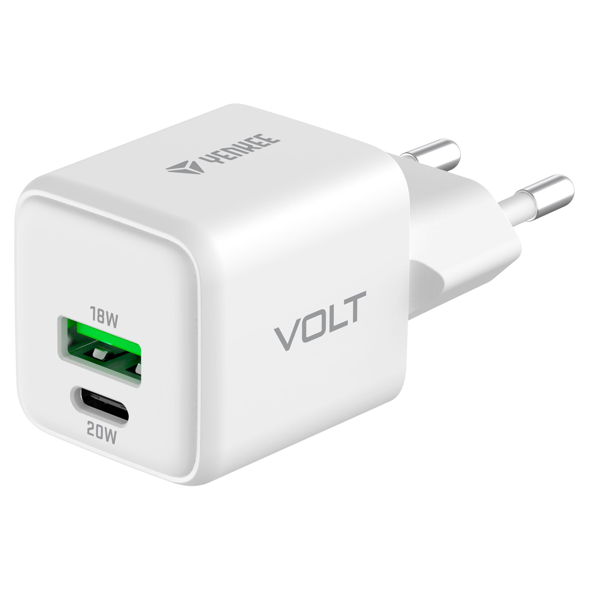 A YENKEE YAC G38 VOLT töltő univerzális hálózati töltő, amely kompatibilis a legnépszerűbb protokollokkal, mint például Apple 2,4A, QC 2.0, QC 3.0, PD 3.0, Samsung AFC és Huawei FCP/SCP. A megfordítható USB-C csatlakozó és a hagyományos USB-A port biztosítja, hogy bármelyik eszközödet könnyedén csatlakoztathasd és biztonságosan töltheted. A kompakt és stílusos kialakítás mellett a YENKEE YAC G38 VOLT töltő mindig kéznél lesz, bárhol is legyél.