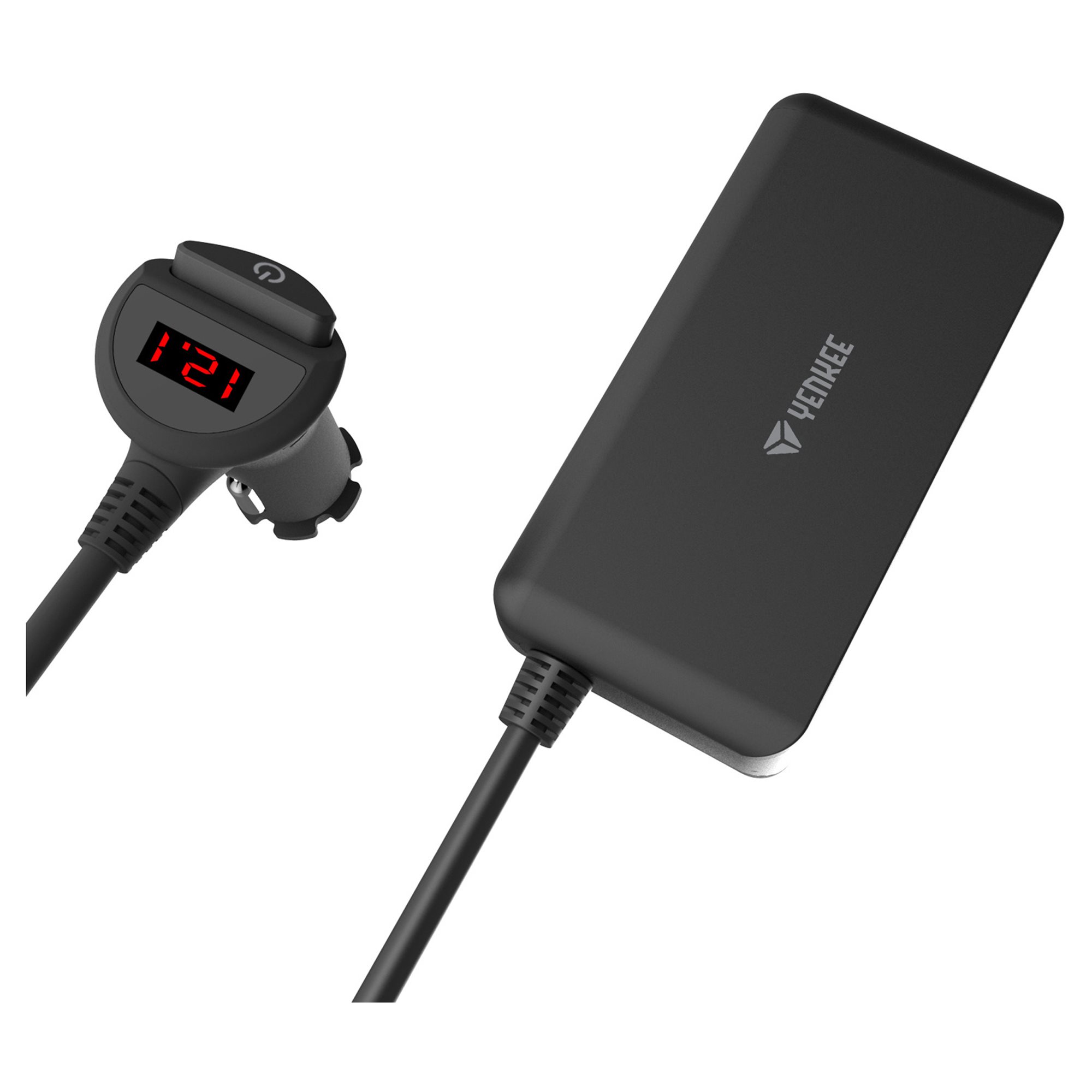 A YENKEE YAC 450 univerzális használatra lett tervezve, így személyautókban (12 V) és teherautókban (24 V) egyaránt alkalmazható. A beépített kijelzőn az aktuális feszültséget és a BE/KI kapcsoló állapotát is nyomon követheted.