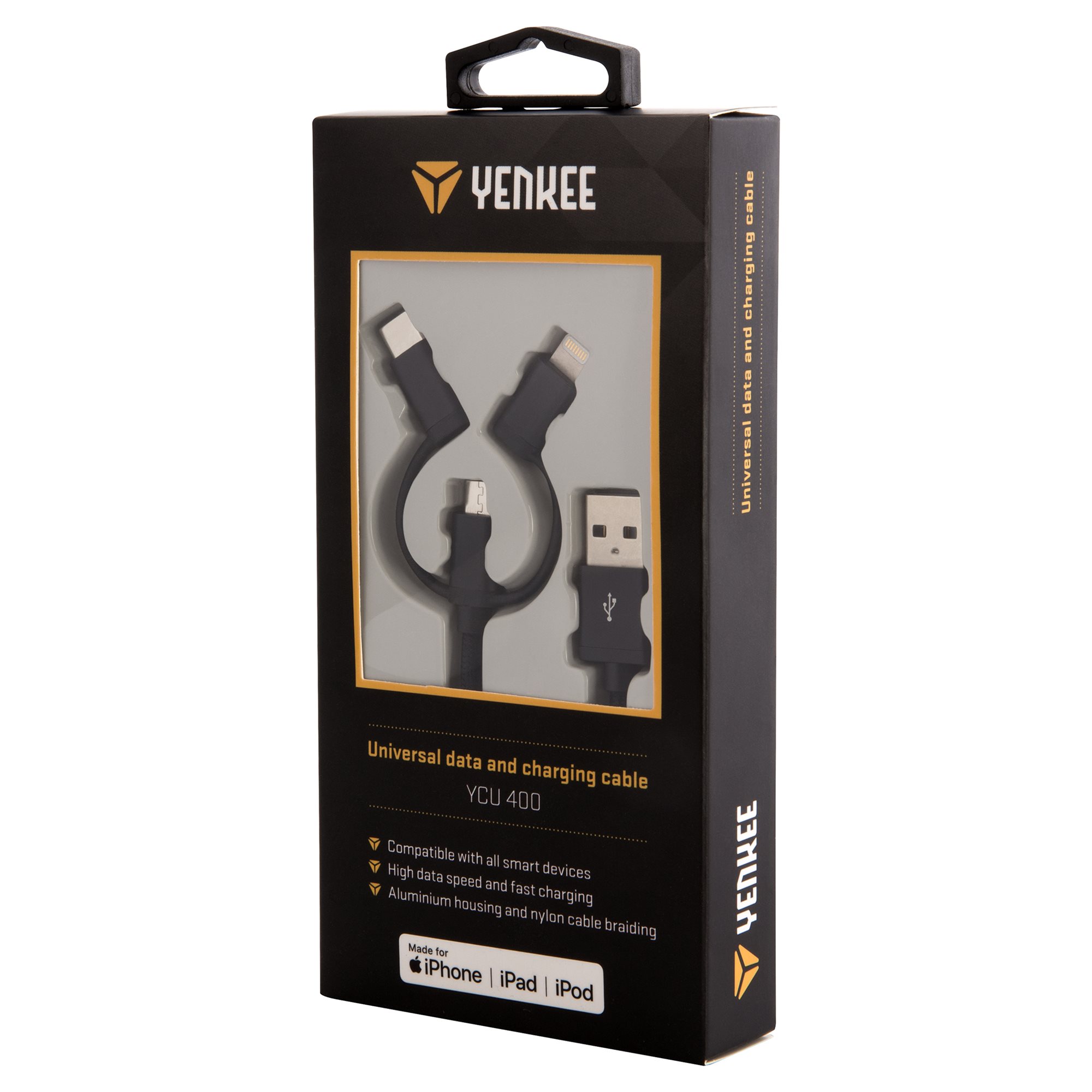 A bármilyen típusú okoskészülékhez való univerzális adat- és töltőkábel támogatja a gyors töltést és a nagy átviteli sebességet. A 3 az 1-ben kialakításnak köszönhetően ideális autóba, utazáshoz és bárhol, ahol különböző okoskészülékek csatlakoztatására van szükség. A kábel micro USB, USB C és tanúsított (MFI) Lightning csatlakozóval rendelkezik.