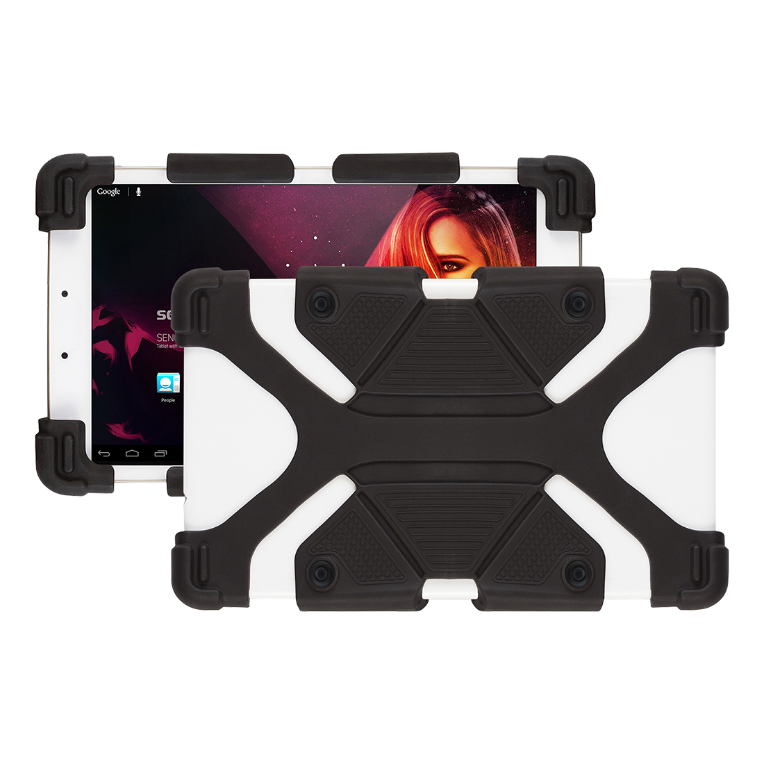 Az univerzális táblagéptok rugalmas szilikonból készült. A megerősített sarkok és a speciális konstrukció megvédi táblagépét a váratlan ütésektől és leeséstől.Speciális konstrukciójának és kímélő anyagainak köszönhetően ez a tok ideális védelmet nyújt a gyermekek által használt táblagépnek.