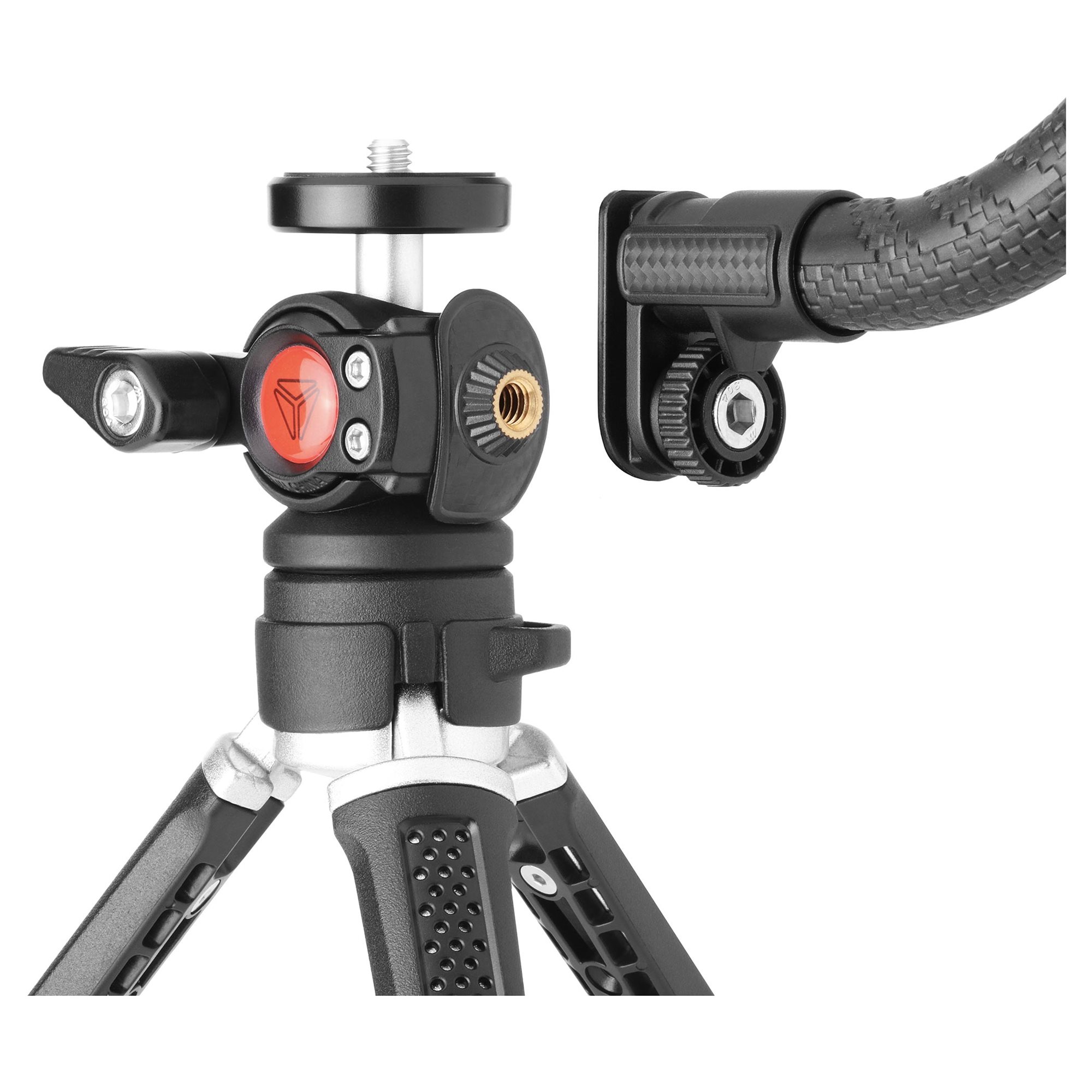 Bár a konstrukció kecsesnek és jól összecsukhatónak tűnik, a való életben nem egy könnyű eset. A kialakításkor alumínium és műanyag kombinációját használták, hogy minden helyzetben és körülmény között megállja a helyét. Így könnyedén rögzíthetsz egy videoprojektort, fényképezőgépet, kamerát, stabilizátort vagy mobiltelefon-tartót az állványra, ami természetesen a készlethez tartozik, így emiatt sem kell aggódnod. A teljesítmény mellett a látótávolsággal is lenyűgözünk. A forgó gömbfejnek és a rugalmas karnak köszönhetően 360°-os perspektívát rögzít különböző pozíciókban.