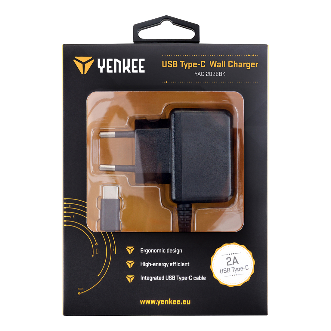 A Yenkee YAC-2026 hálózati töltő akár 2,0 Amperes töltésre képes. Minden magyarországi fali aljzattal kompatibilis, a beépített kábel USB-C ( Type-C) csatlakozóval lett felszerelve, amely 1,3 m hosszúságú. Ideális választás mobiltelefonok töltésére. A töltő megfelel a szigorú szabványoknak és többszörös védelemmel rendelkezik túlmelegedés, kigyulladás, rövidzárlat vagy túlterhelés ellen.