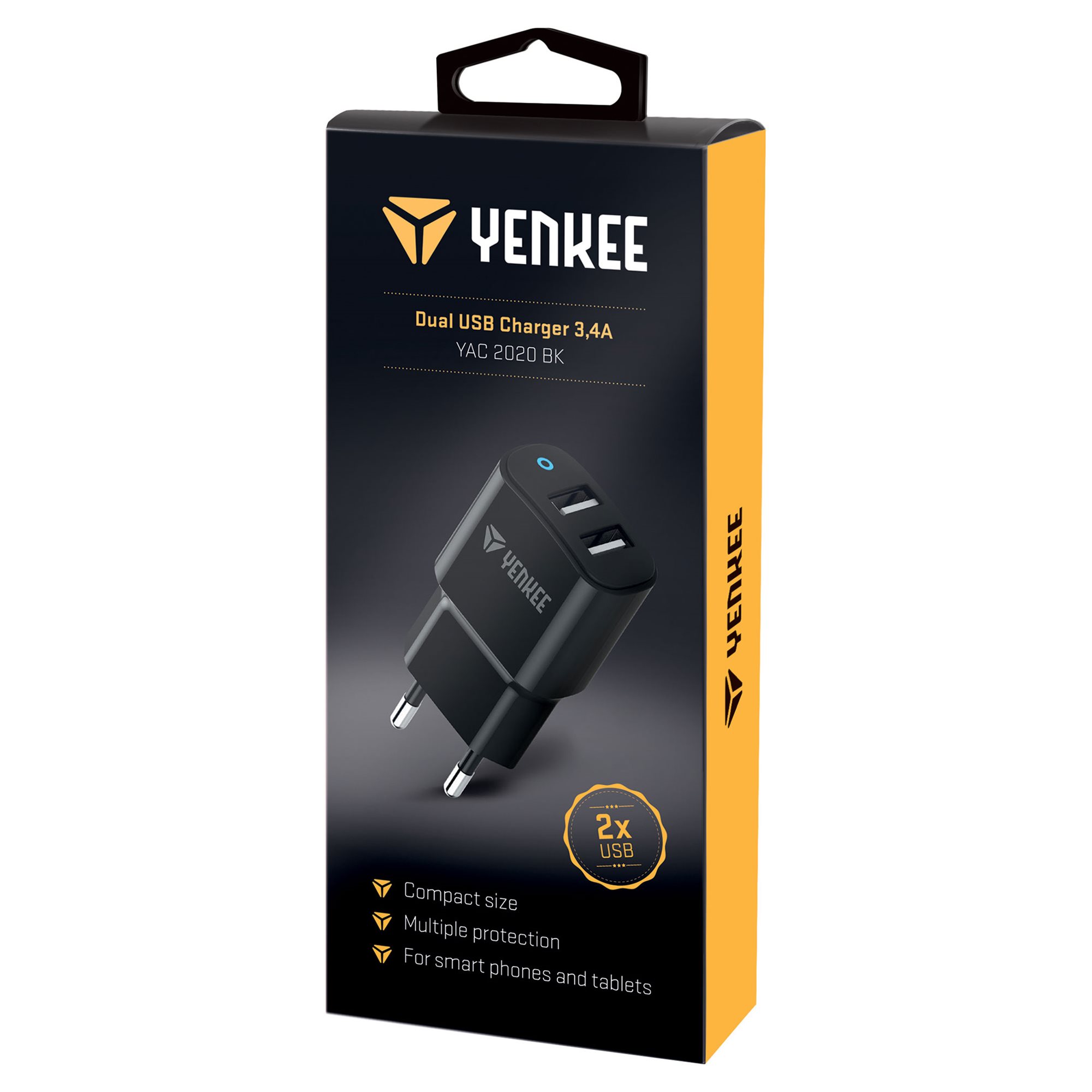 Dual USB töltő 3,4 A kimeneti teljesítménnyel mobiltelefonokhoz és táblagépekhez. Alacsony súlyának és kompakt méretének köszönhetően ideális utazásra vagy póttöltőként. A maximális biztonság érdekében a töltő többszörös védelmet nyújt túlfeszültség, túlterhelés, feszültség és rövidzárlat ellen.