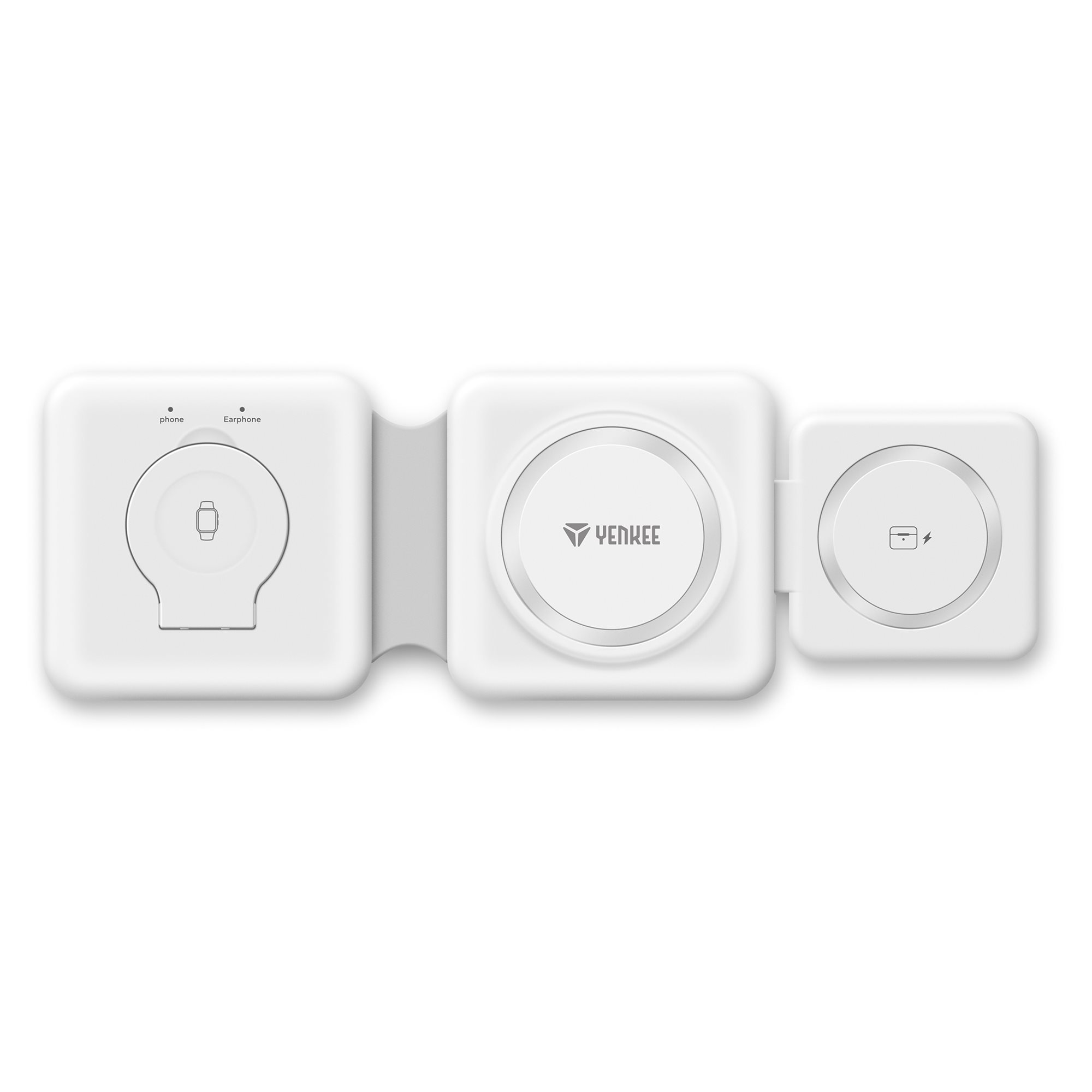 Bizonyára Ön is tapasztalt már olyan helyzetet, amikor útközben meglepte, hogy lemerült az iPhone, az Apple Watch, az Airpods vagy a TWS fejhallgató akkumulátora. Dolgoznod kell, kedvenc podcastodat kell hallgatnod vagy a weben kell szörföznöd? Ilyenkor számíthatsz a YENKEE YAC 5330 3 az 1-ben utazási töltőre, amely stabil, nagy teljesítményű és gyors, akár 15 W-os vezeték nélküli töltést biztosít. Egyszerre több eszközt is tölthetsz, sőt, a dönthető mechanizmusnak köszönhetően órádat függőleges és vízszintes helyzetben is töltheted.