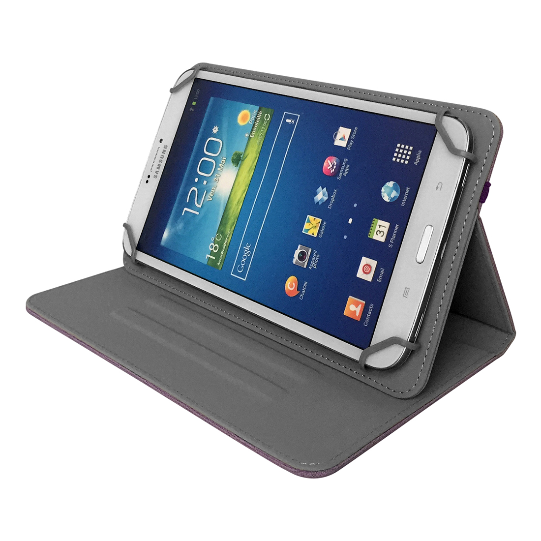 Univerzális védőtok állvánnyal 8" táblagéphez. A rögzítés a sarkokban és a rugalmas szalaggal történ bezárás biztonságos hordást tesz éehetővé, és megakadályozza, hogy a táblagép kiessen a tokból. A fiinom mikroszövet bélés optimális védelmet nyújt a karcolódás ellen.
