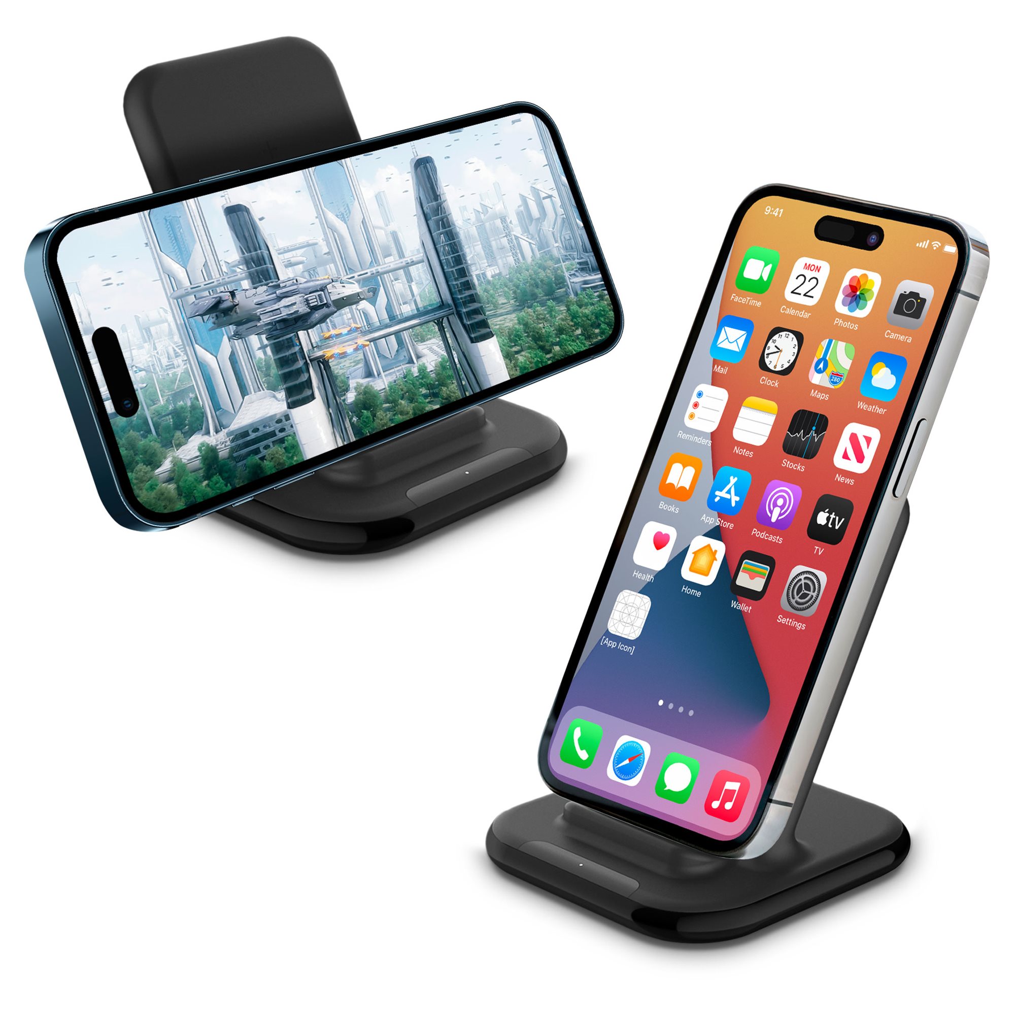 A YENKEE YAC 5135 egy praktikus és hatékony vezeték nélküli töltőállvány, amely akár 15 W-os teljesítménnyel képes feltölteni készülékedet. A kettős tekercses kialakításnak köszönhetően a telefont függőleges és vízszintes pozícióban is töltheted, így videónézés vagy munka közben is használható.